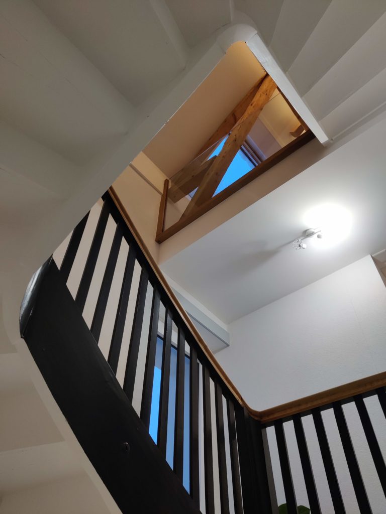 Conservation de l’escalier et de la charpente en bois, remise en valeur des éléments existants. Aménagements des combles et construction d’une nouvelle toiture pour l’amélioration du confort d’habitat et énergétique.